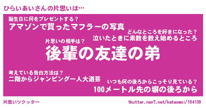 | ヘコむあだ名 | 『ひらもー』『つくし』『ひらっぺ』 |