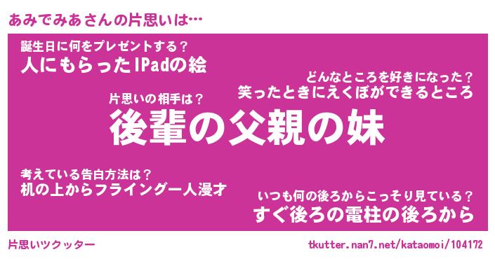 | 胡散臭い通販商品みたいなあだ名 | 『モテモテ間違いなし水晶球…その名も「あみでみあ」』 |