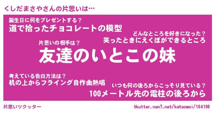 | ヘコむあだ名 | 『くしもー』『豆乳』『くしっぺ』 |