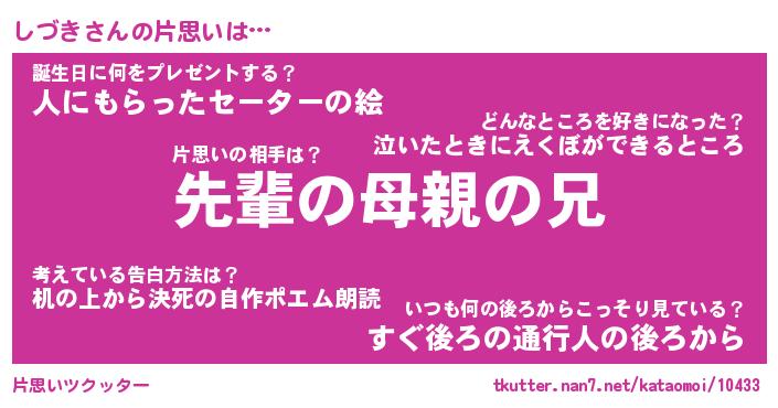 | ヘコむあだ名 | 『しづにー』『酢こんぶ』『しづっぺ』 |