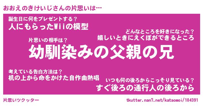 | 男性向けラノベタイトル風あだ名 | 『おおえのきけいじの憂鬱』 |