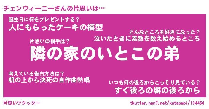 | 女子向けラノベタイトル風あだ名 | 『(仮)チェンウィーニーのやんごとなき事情』 |
