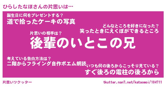 | ヘコむあだ名 | 『ひらにゅー』『牛乳』『ひらお』 |