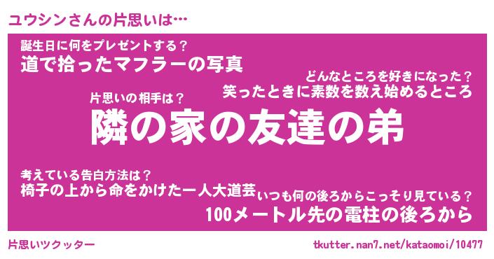 | ヒーロー風カッコイイあだ名 | 『スーパーユウシン』『幻影騎士ユウ』 |