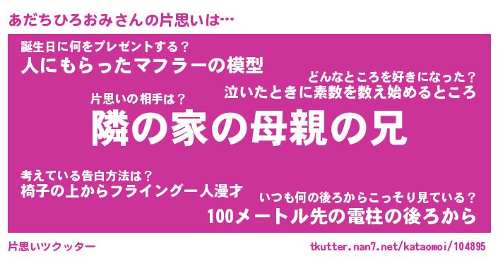 | ポケモン風あだ名 | 『アダチュウ』『アダチダネ』 |