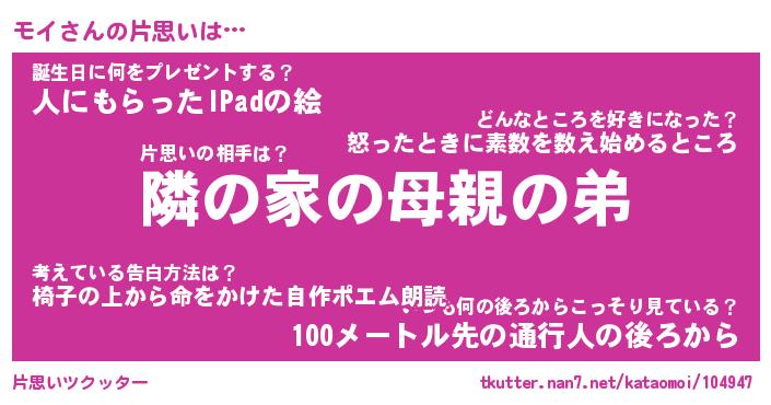 | ポケモン風あだ名 | 『モイチュウ』『モイダネ』『ヒモイ』 |
