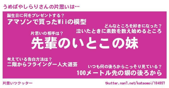 | 胡散臭い通販商品みたいなあだ名 | 『モテモテ間違いなし水晶球…その名も「うめばやしらり」』 |