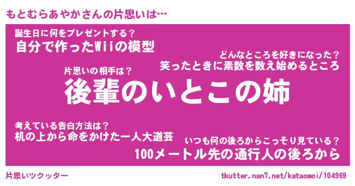 | 肩書あだ名 | 『もとむらあやか社長令嬢』 |