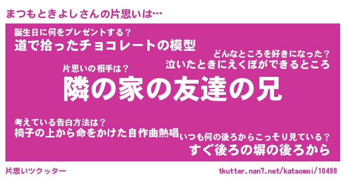 | 男性向けラノベタイトル風あだ名 | 『まつもときよしの憂鬱』 |