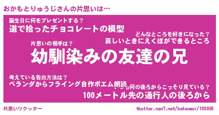 | 男性向けラノベタイトル風あだ名 | 『おかもとりゅうじの憂鬱』 |