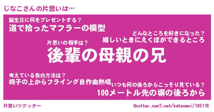 | ヘコむあだ名 | 『じなにー』『なまこ酢』『じなっ子』 |
