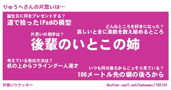 | ヘコむあだ名 | 『りゅもー』『豆乳』『りゅ太郎』 |