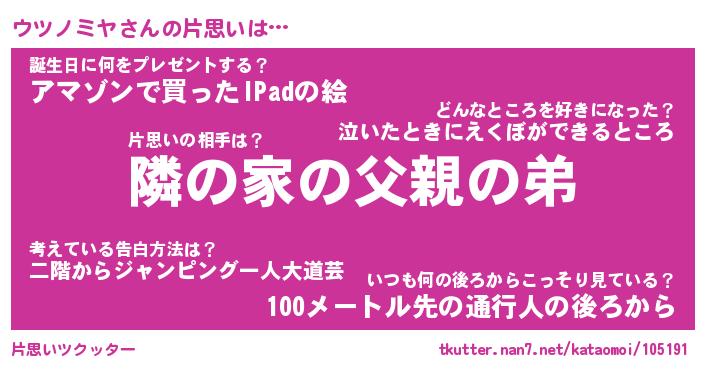 | ファンタジー風あだ名 | 『ウツフェル』『エターナルウツノミヤー』 |