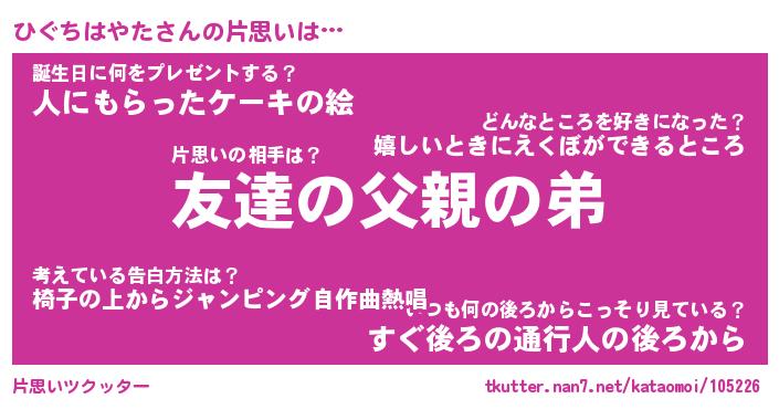 | 胡散臭い通販商品みたいなあだ名 | 『億万長者になれるブレスレット…その名も「ひぐちはやた」』 |