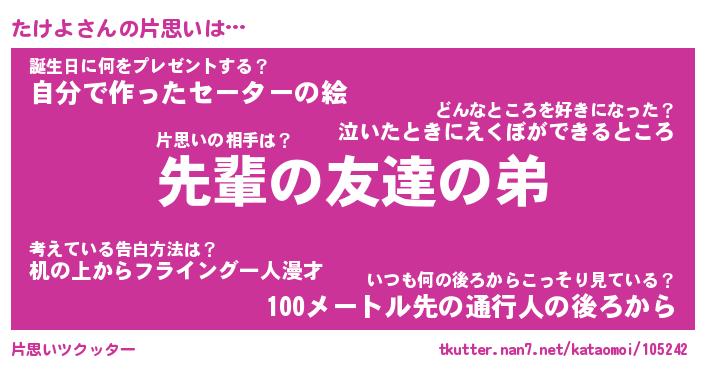 | ヘコむあだ名 | 『たけっふぃ~』『つくし』 |