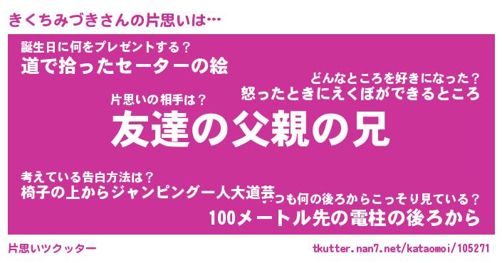 | 胡散臭い通販商品みたいなあだ名 | 『億万長者になれる水晶球…その名も「きくちみづき」』 |