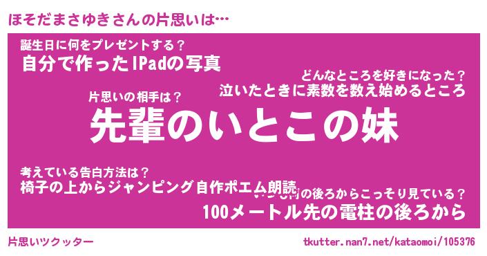 | ヘコむあだ名 | 『ほそもー』『つくし』『ほそを』 |