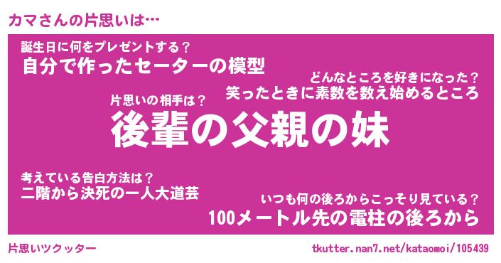 | ヘコむあだ名 | 『カマふぇ~』『つくし』『カマ(爆)』 |