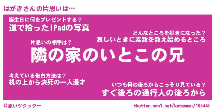 | 男性向けラノベタイトル風あだ名 | 『はがきの憂鬱』 |