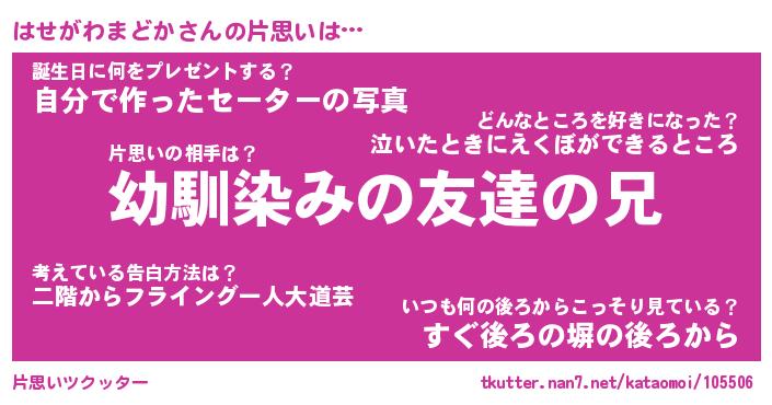 | 胡散臭い通販商品みたいなあだ名 | 『必ず成功する霊験あらたかなお札…その名も「はせがわまどか」』 |