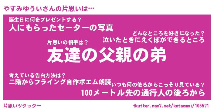 | 胡散臭い通販商品みたいなあだ名 | 『億万長者になれるブレスレット…その名も「やすみゆうい」』 |
