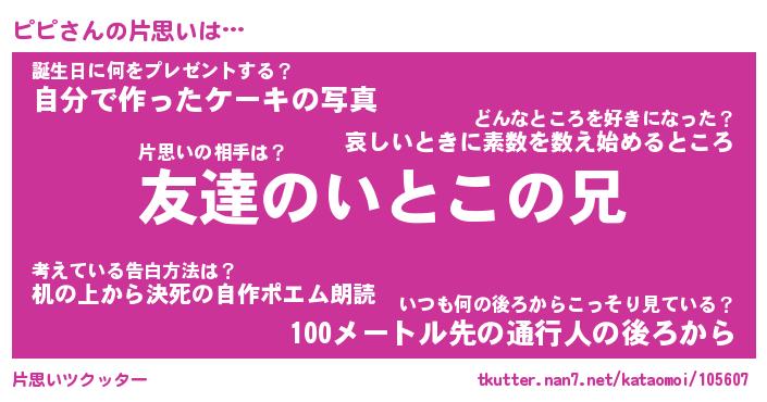 | ヘコむあだ名 | 『ピピもー』『つくし』『ピピっちょ』 |