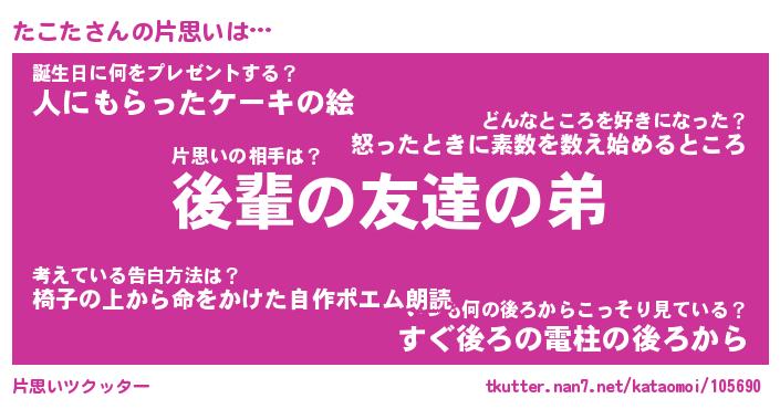 | 意味不明あだ名 | 『ペロリンたこた』『たこたフォーエバー』 |