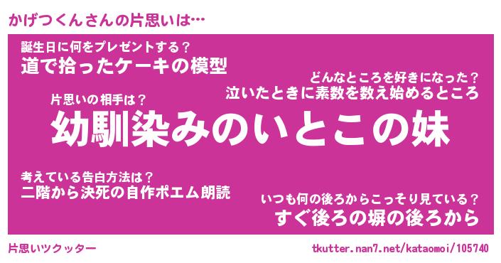 | 男性向けラノベタイトル風あだ名 | 『かげつくんの憂鬱』 |