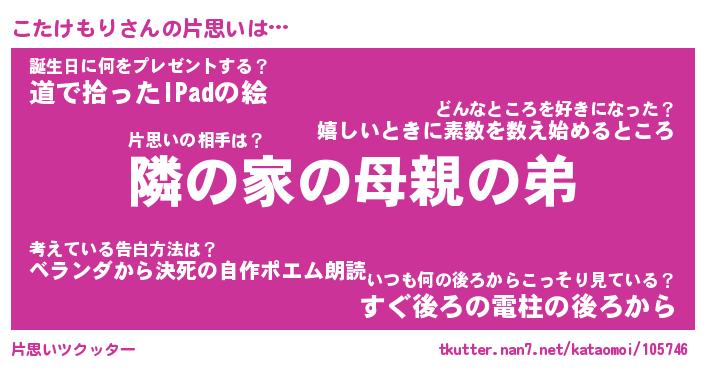 | ファンタジー風あだ名 | 『コタフェル』『エターナルコタケモリー』 |