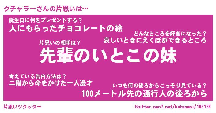 ファンタジー風あだ名 | 『クチフェル』『エターナルクチャラーー』 |