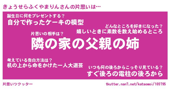| 胡散臭い通販商品みたいなあだ名 | 『必ず成功するブレスレット…その名も「きょうせらふくやまりん」』 |