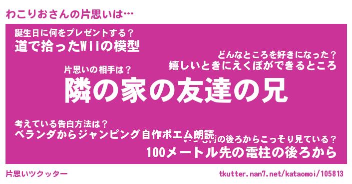 | 伝説のあだ名 | 『伝説のスナイパーわこりお』 |