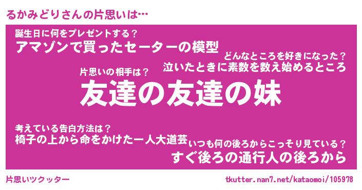 | 伝説のあだ名 | 『封印されしスナイパーるかみどり』 |