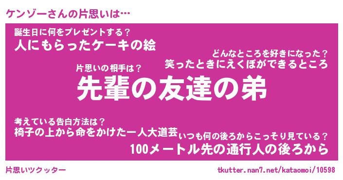 | 意味不明あだ名 | 『ペロリンケンゾー』『永久保存ケンゾー』 |