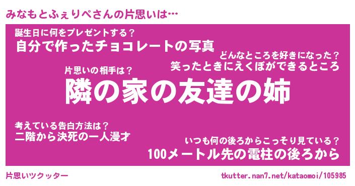 | 意味不明あだ名 | 『ペロリンみなもとふぇりぺ』 |
