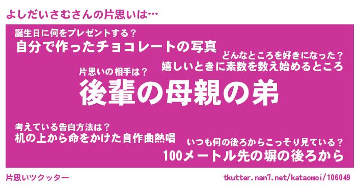 | 女子向けラノベタイトル風あだ名 | 『誰かこのよしだいさむを説明してください! ~契約から始まるウェディング~』 |