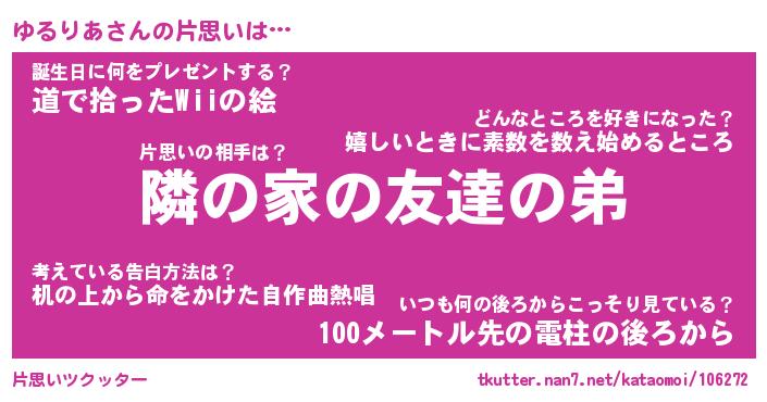 | ヘコむあだ名 | 『ゆるっふぃ~』『豆乳』『ゆるを』 |
