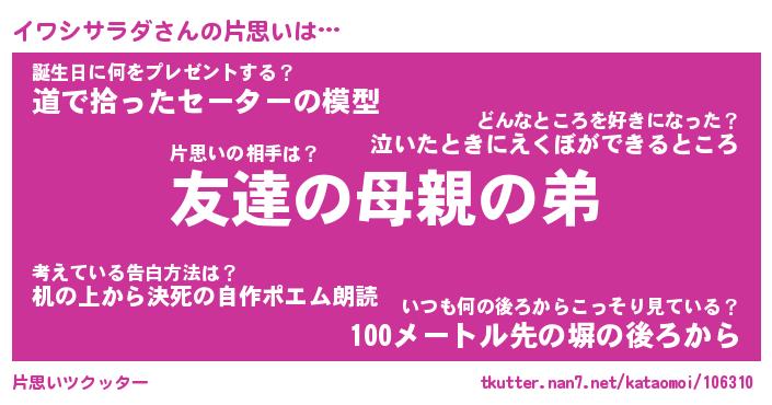 | 胡散臭い通販商品みたいなあだ名 | 『億万長者になれるブレスレット…その名も「イワシサラダ」』 |