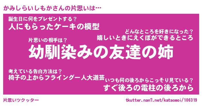 女子向けラノベタイトル風あだ名 | 『(仮)かみしらいしもかのやんごとなき事情』 |
