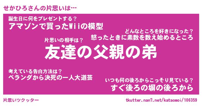 | 胡散臭い通販商品みたいなあだ名 | 『億万長者になれるブレスレット…その名も「せかひろ」』 |