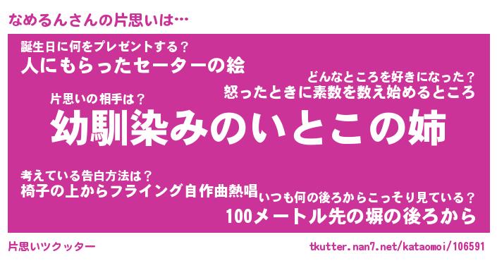 | 男性向けラノベタイトル風あだ名 | 『なめるんの憂鬱』 |
