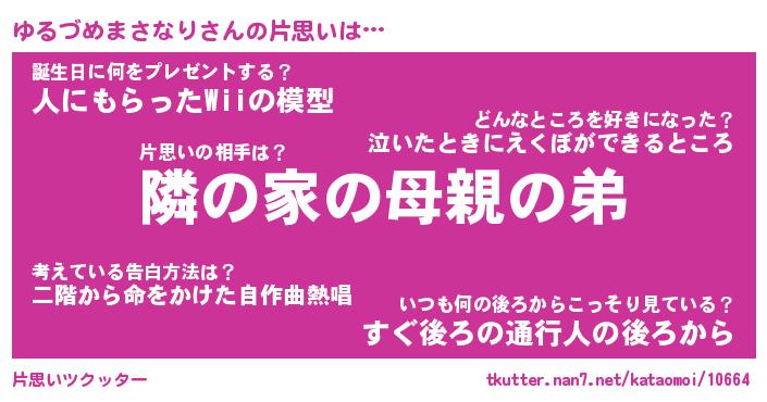 | 胡散臭い通販商品みたいなあだ名 | 『必ず成功するブレスレット…その名も「ゆるづめまさなり」』 |