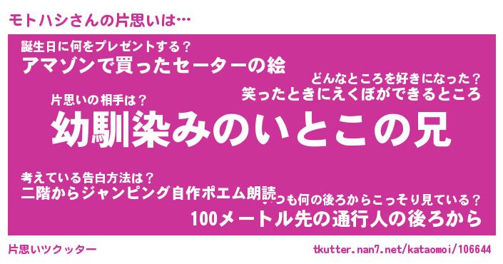 | ファンタジー風あだ名 | 『モトフェル』『エターナルモトハシー』 |