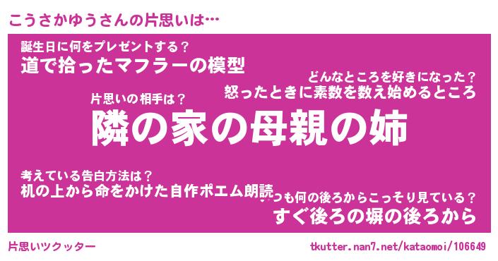 | 女子向けラノベタイトル風あだ名 | 『(仮)こうさかゆうのやんごとなき事情』 |
