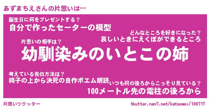 | 男性向けラノベタイトル風あだ名 | 『あずまちえの憂鬱』 |