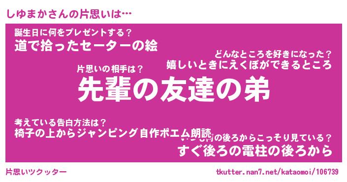 | ヘコむあだ名 | 『しゆもー』『豆乳』『しゆお』 |