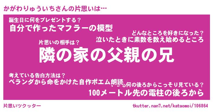 | 胡散臭い通販商品みたいなあだ名 | 『モテモテ間違いなし水晶球…その名も「かがわりゅういち」』 |