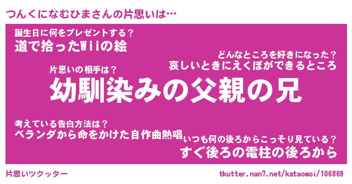 | 男性向けラノベタイトル風あだ名 | 『つんくになむひまの憂鬱』 |