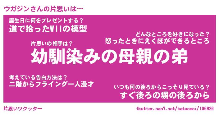 | ヘコむあだ名 | 『ウガにー』『豆乳』『ウガっぺ』 |