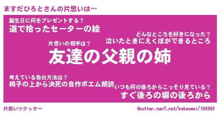 | ヘコむあだ名 | 『ますふぇ~』『豆乳』『ますっ子』 |